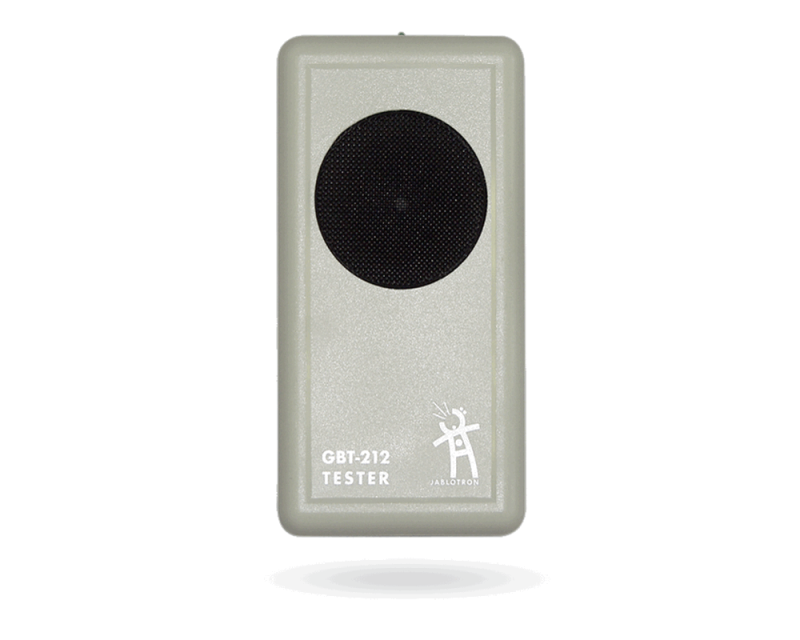 Toto zařízení Jablotron je určeno k testování akustických detektorů rozbití skla. Tester GBT-212 detekuje změnu tlaku vzduchu způsobenou prohnutím okenní tabule a následně automaticky generuje zvuk imitující tříštění skla.