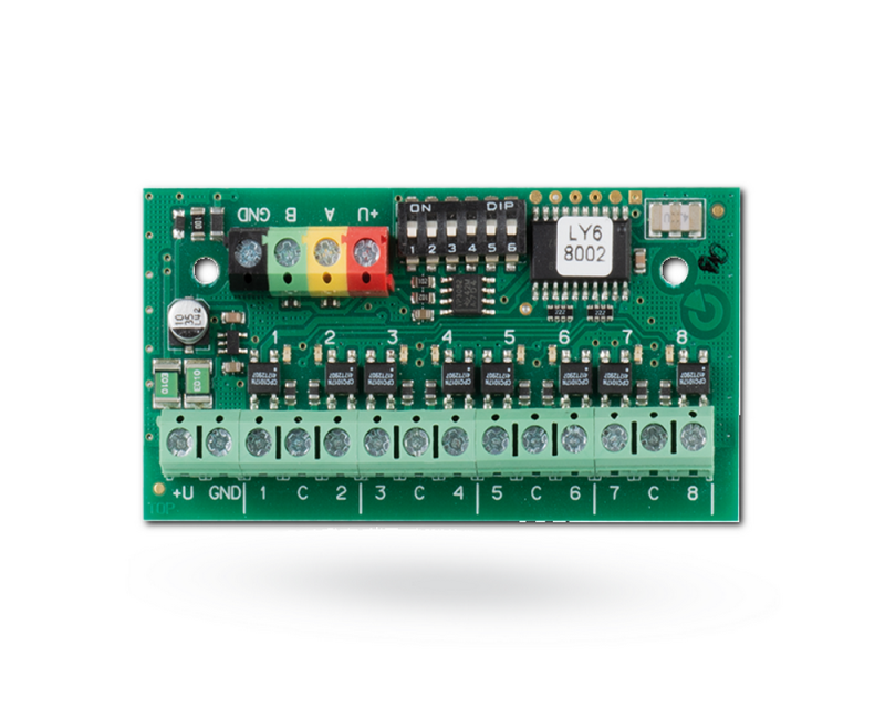Výrobek je komponentem systému JABLOTRON 100+. Poskytuje celkem osm galvanicky oddělených výstupů. Může sloužit například k ovládání optických indikačních prvků, rádiových komunikátorů nebo silových relé.