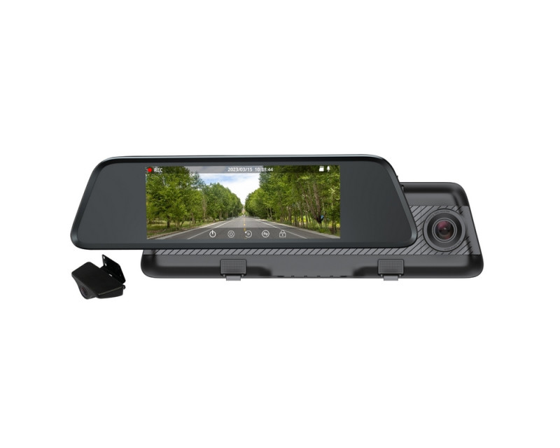 Část odrazové plochy zrcátka slouží zároveň jako velký 4,39" IPS displej, pomocí kterého lze nastavovat všechny důležité funkce, prohlížet pořízené záznamy, sledovat obraz ze zadní kamery - např. při couvání, kdy se obraz automaticky přepne právě na zadní kameru a přidá statické naváděcí parkovací čáry. Na displeji je možné sledovat také obraz pouze z přední kamery. Kamera disponuje tzv. parkovacím režimem, který plní funkci střežení automobilu v době vaší nepřítomnosti.