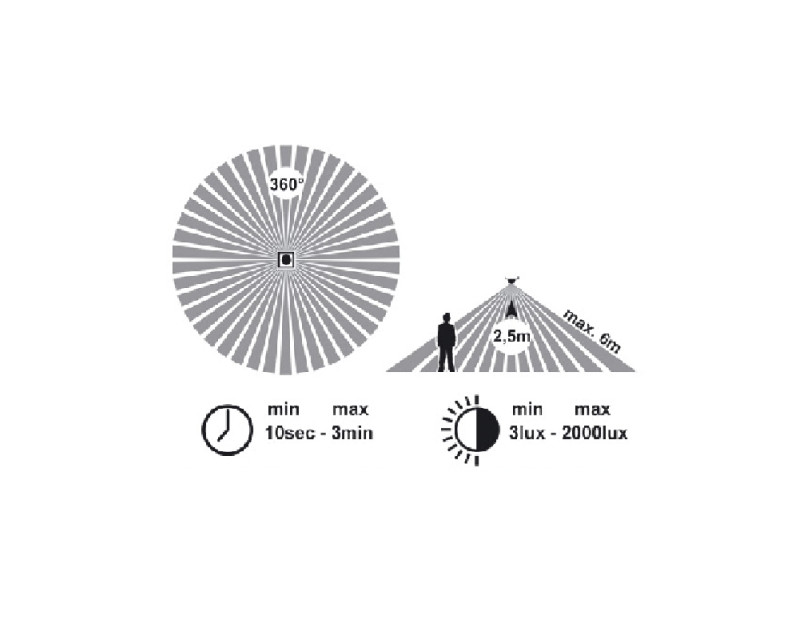 LED interiérové svítidlo VERA disponuje senzorem pohybu + setmění. Úhel pokrytí je celých 360˚ a dosah senzoru je až 6 metrů při montážní výšce 2,5m Svítivost svítidla je 800 Lm a dokáže nahradit klasickou žárovku o výkonu 80W. Výkon 12W, uspoří až 80% energie. Barva světla teplá bílá 3000K, stupeň krytí IP20. Průměr svítidla 300mm. Životnost 30000 hodin.