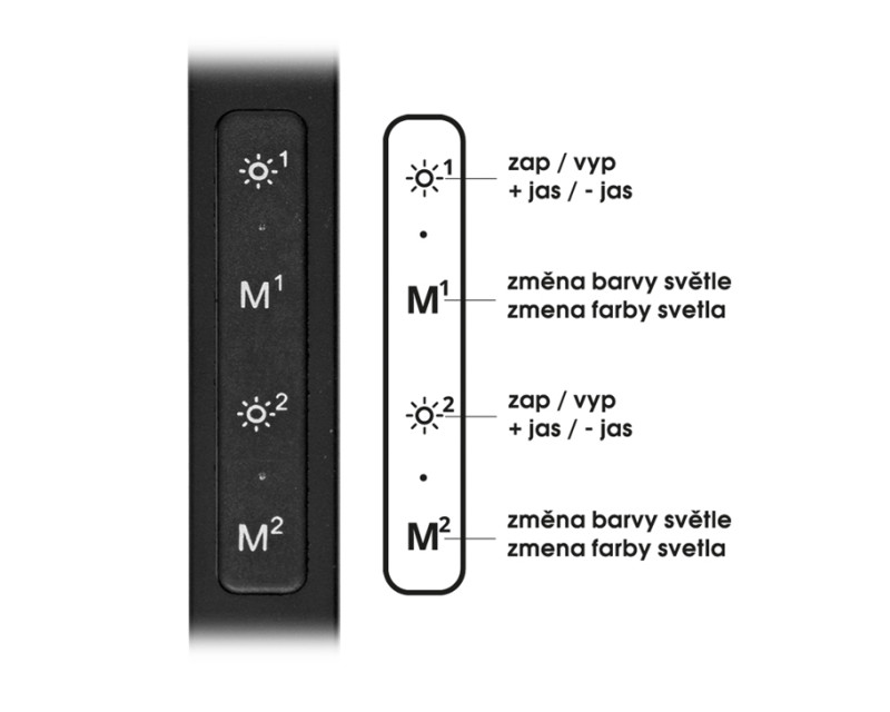 Pomocí ovládacího panelu na zadní části lampičky je možné regulovat jas i požadovanou teplotu chromatičnosti v rozmezí 3000-6000K.