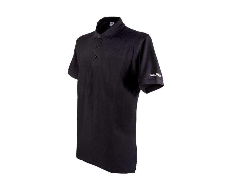 Polokošile v černé barvě s výšivkou Jablotron na rukávu, s límečkem a knoflíčky.