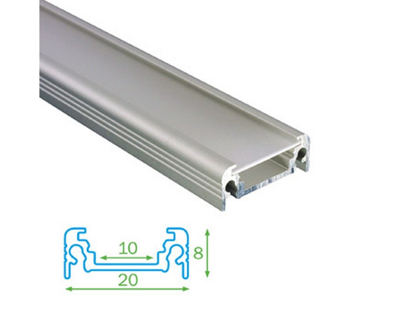 AL profil určený pro osazení LED pásky. Pásek se jednoduše nalepí do profilu a profil se osadí podle typu do vyfrézované drážky, přisadí se, nebo zavěsí. Profil zároveň plní funkci chlazení (odvod ztrátového tepla) což je nutné u výkonných LED pásků. Dodáváno včetně krycího matného plexi s propustností 75%.
