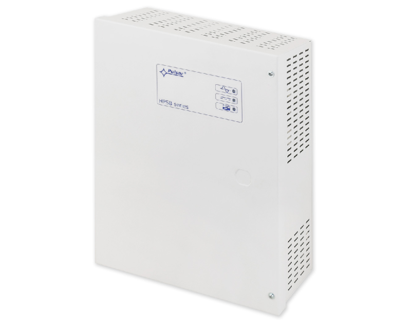 Pomocný zdroj v plechovém boxu s místem pro záložní akumulátor. Zdroj je v provedení AC/DC měniče, který se vyznačuje vysokou provozní odolností, vysokou účinností a minimálním ohřevem. Provedení je určeno pro použití v instalacích EZS, ale lze použít i v jiných případech, kde je potřeba zálohovaný zdroj 12 V =.