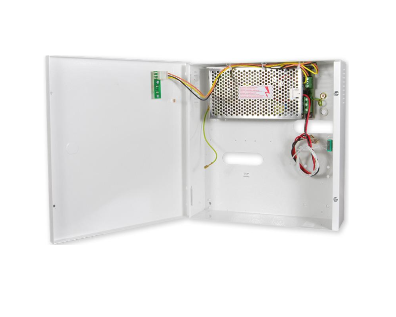 Komplet pomocného zdroje v plechovém boxu s místem pro záložní akumulátor. Zdroj je v provedení AC/DC měniče, který se vyznačuje vysokou provozní odolností, vysokou účinností a minimálním ohřevem. Provedení je určeno pro použití v instalacích EZS, ale lze použít i v jiných případech, kde je potřeba zálohovaný zdroj 12 V =.