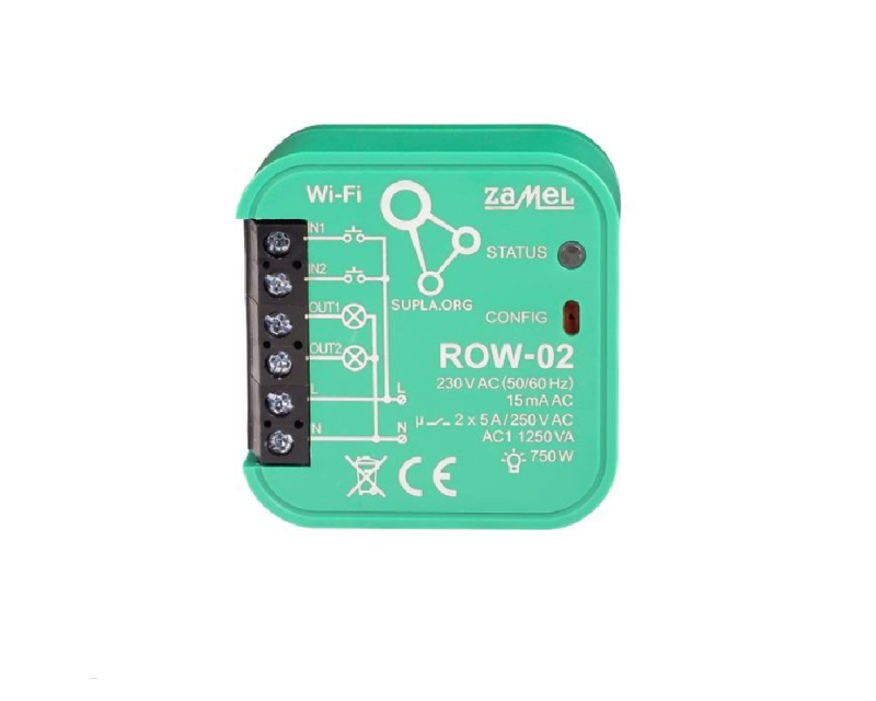 Díky dvěma vstupům umožňuje modul ROW-02 ovládání až dvou světel, nebo jiných zařízení pomocí tlačítek nebo spínačů v bistabilním režimu. Navíc díky integrovanému modulu Wi-Fi je možné vzdáleně spravovat osvětlení pomocí aplikace pro smartphone. Stav zařízení pak vždy vidíte ve své aplikaci SUPLA. Uživatel může ovládat osvětlení odkudkoli na světě. Díky cloudové aplikaci je také možné automaticky zapínat a vypínat osvětlení podle plánu uloženého v cloudu. Wi-Fi ovládací modul pro spínání světel a ovládání elektrických zásuvek přes internet pomocí mobilu nebo tabletu se systémy iOS a Android.