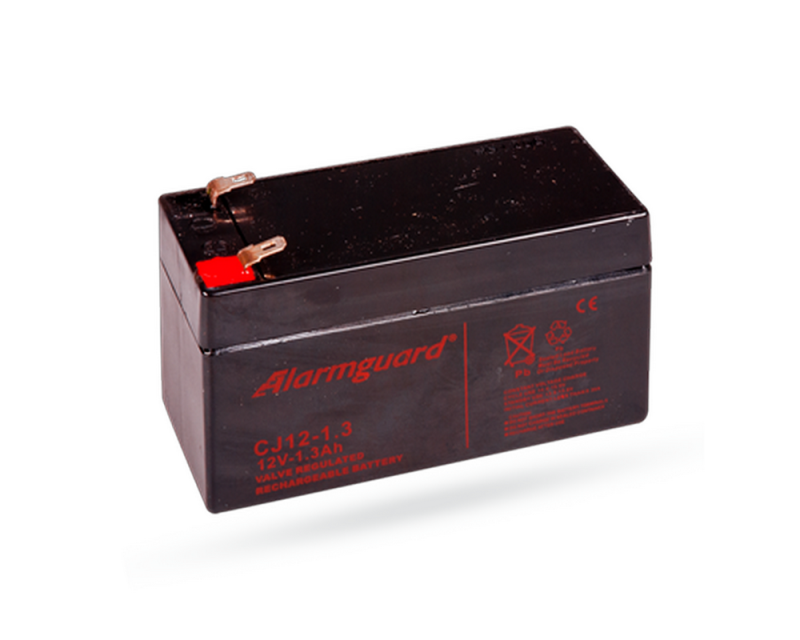 CJ12-1.3 12V 1.3Ah - záložní , bezúdržbový, VRLA, uzavřený, akumulátor značky ALARMGUARD. Technologie AGM. Určený převážně pro EZS, EPS.