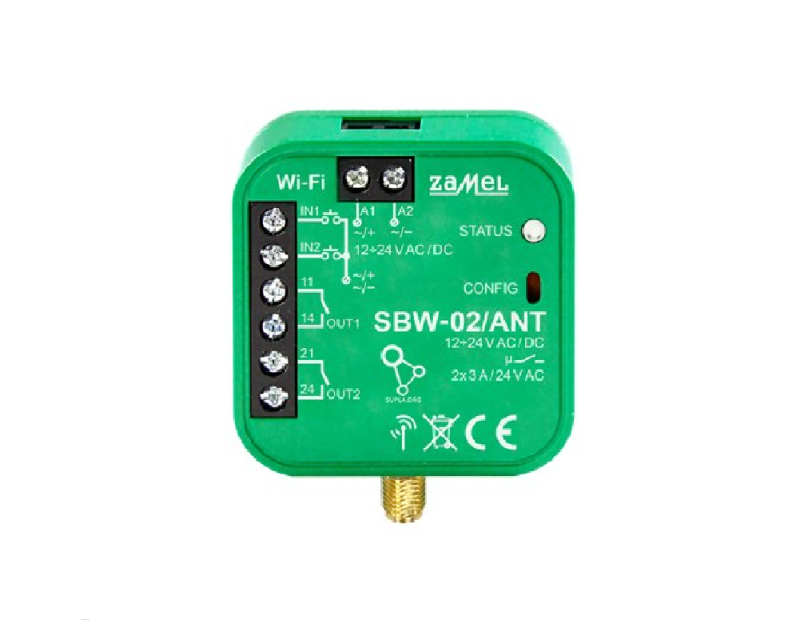 SBW-02/ANT - Wi-Fi modul s externí anténou pro ovládání až 2 garážových vrat nebo brány s indikací koncových poloh, SUPLA