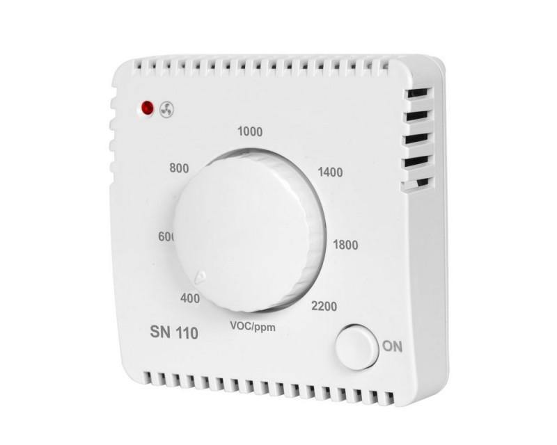 SN110 je čidlo pro měření kvality vzduchu v interiérech. Monitoruje kvalitu vzduchu a spíná ventilační systém (max. 10A) podle nastavené úrovně.