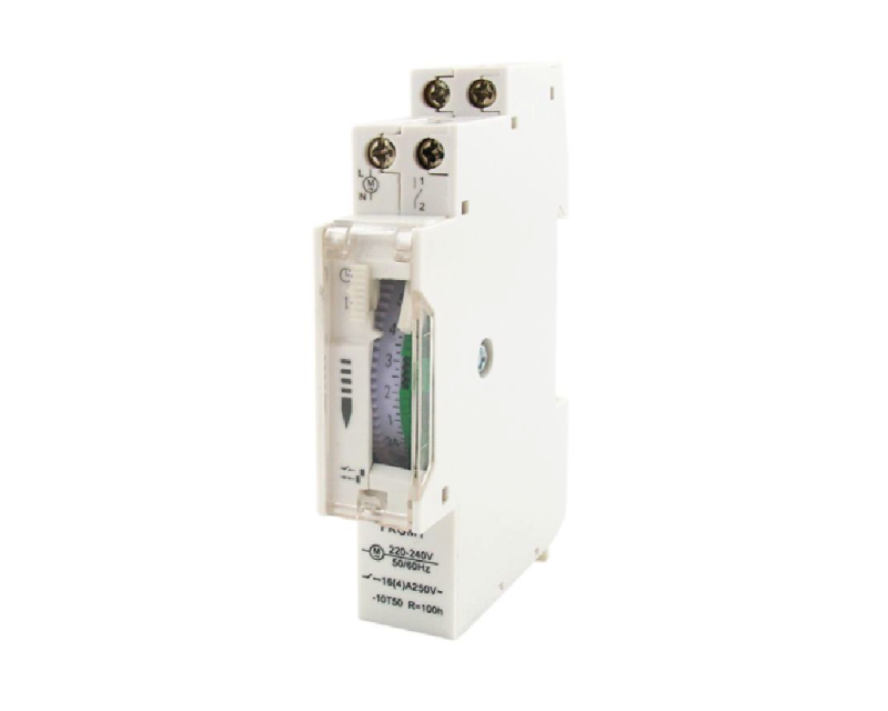 Jednoduché mechanické spínací hodiny s 24hodinovým cyklem vhodné pro umístění do rozvaděčů na DIN lištu.