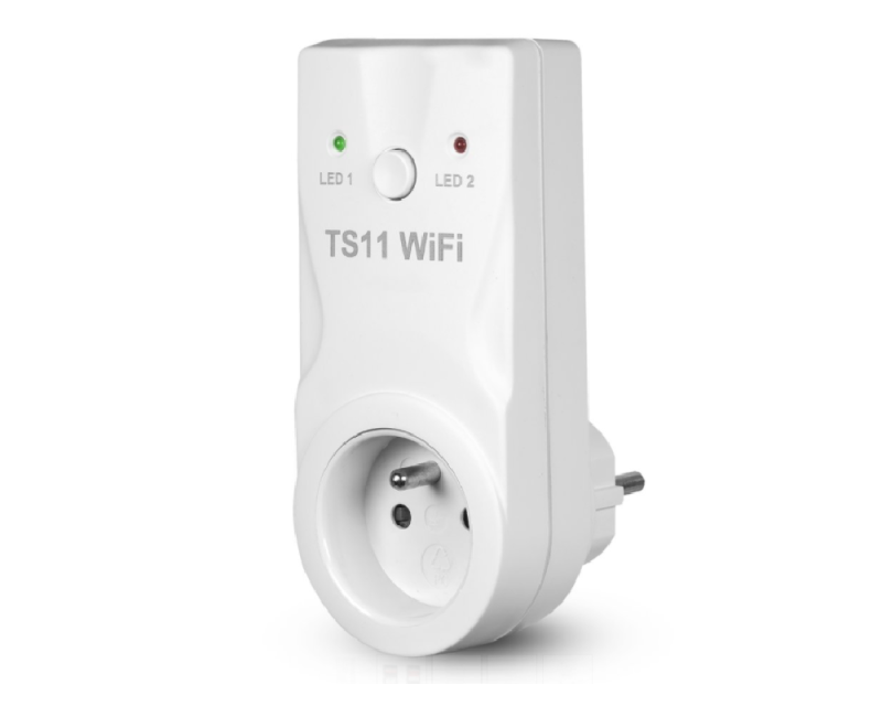 TS11 WiFi slouží ke spínání různých spotřebičů. K ovládání je nutné internetové připojení (nelze ovládat lokálně). Po naprogramování funguje i bez WiFi připojení v autonomním režimu.