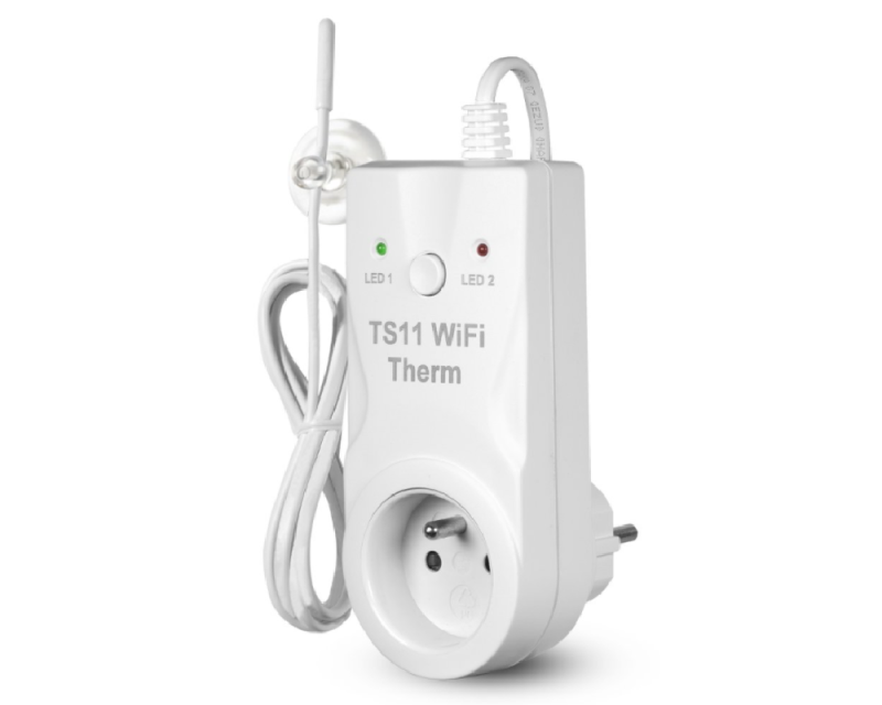 TS11 WiFi Therm slouží ke spínání různých spotřebičů podle požadované teploty (nebo i pouze podle času). K ovládání je nutné internetové připojení (nelze ovládat lokálně). Po naprogramování funguje i bez WiFi připojení v autonomním režimu.