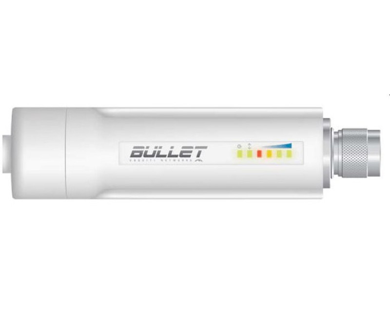 BulletM2HP je miniaturním a nejrychlejším 2.4GHz venkovním klientem, který lze jednoduše připevnit přímo k anténě. Tím odpadá potřeba použití ztrátového koaxiálního kabelu! Díky integrovanému ukazateli intenzity signálu lze přímo na místě správně nasměrovat klientskou anténu. Vysoká přenosová rychlost (150 Mbps) je dosažena díky podpoře standardu 802.11n a to za použití pouze jedné antény. Od starších verzí Bulletů se liší také vyšším výkonem procesoru, větší pamětí a vysokou citlivostí bezdrátové části.