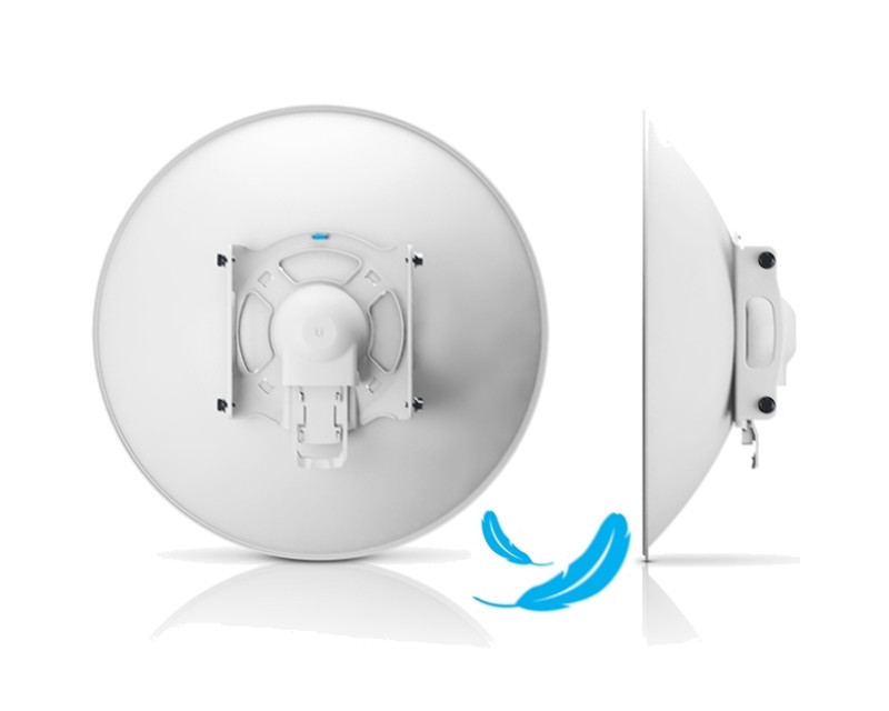 Parabolická duální anténa Ubiquiti RocketDish RD-5G30-LW 5 GHz, zisk 30 dBi, průměr 650 mm, bez radomu, duální 2x2 MIMO. Anténa má větší hloubku paraboly a tedy větší odolnost vůči rušení než původní model RD-5G30. Anténa je dodávána s držákem na stožár s možností náklonu, držákem pro jednotky Rocket, krytem kabelů, krytem jednotky a dvojicí pigtailů pro připojení jednotky.