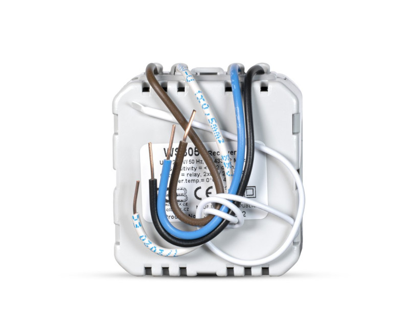 Bezdrátový přijímač s montáží do instalační krabice pro dálkové ovládání žaluzií, rolet, markýz a vrat.