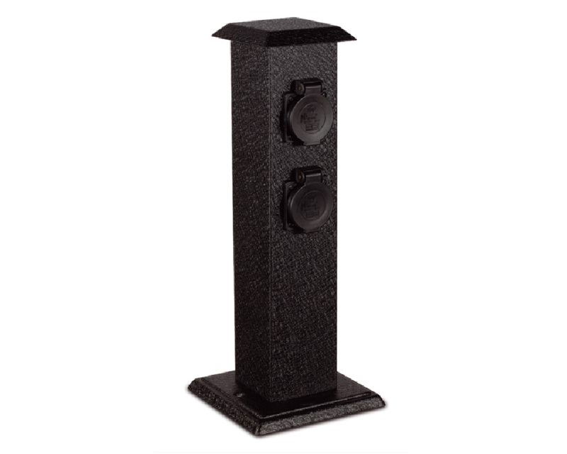 Kovový rozvodový zahradní sloupek s krytkami zásuvek je vhodný například pro připojení zahradní techniky. Disponuje 4 zásuvkami a je určen pro pevné povrchy. Maximální zátěž 3600W.